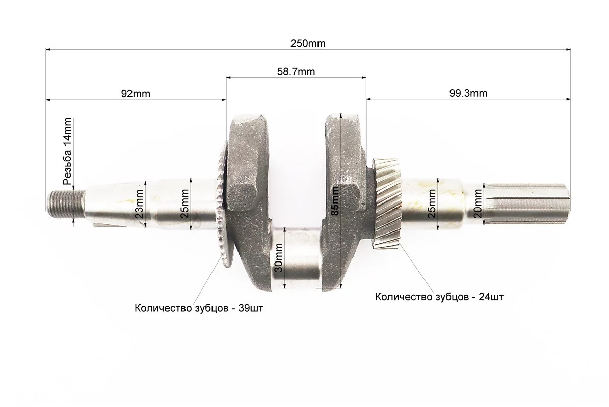 Коленвал 168F/170F (Dшейки-30mm, H-85mm, L-250mm) под шлиц D-20mm