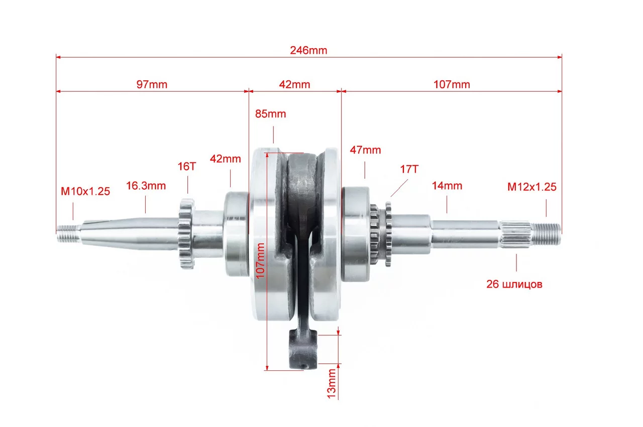 Коленвал (16зуб. на шестерне), 50-100сс 4Т