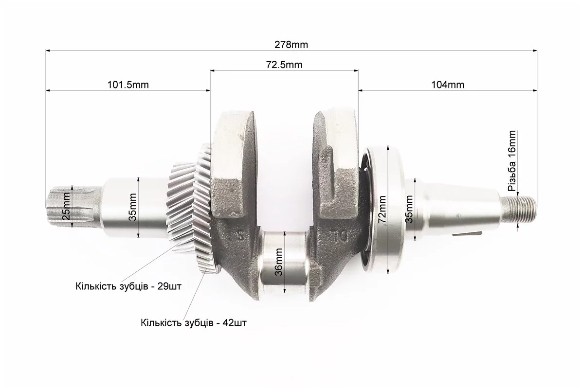 Коленвал под шлиц D-25mm в сборе 173F/177F Тип 1, FIX-607009
