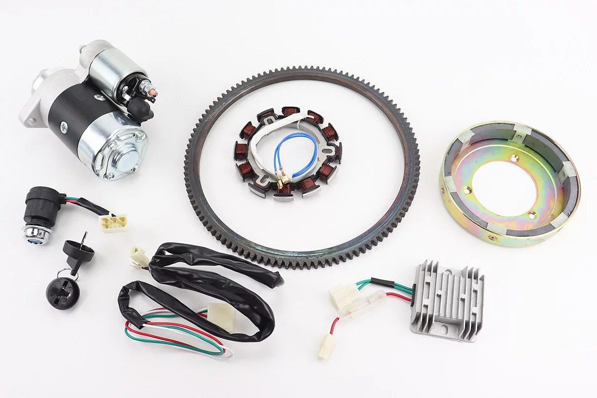 Комплект для переоснащения мотоблока под электростартер 186F (электростартер, замок, проводка, магнето, реле, венец)