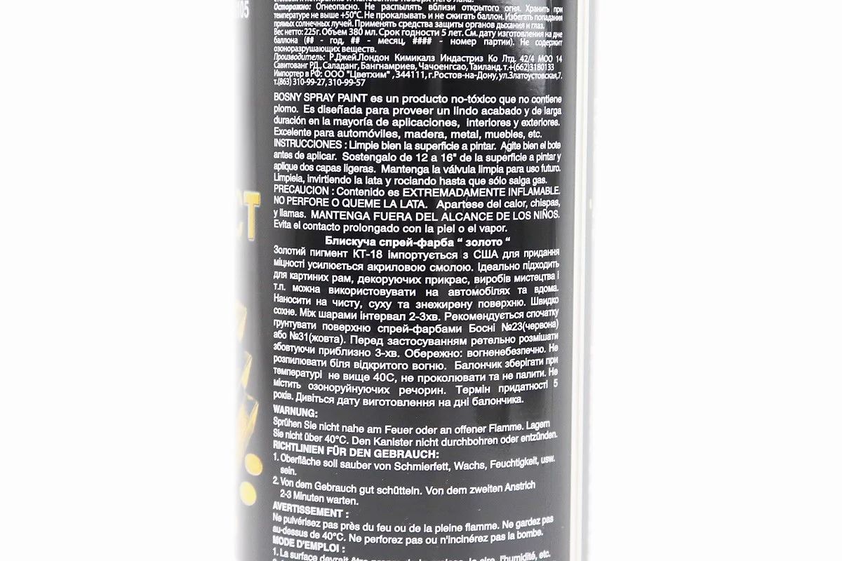 Краска акриловая №182 "ЛАТУННОЕ ЗОЛОТО", Аэрозоль 380ml