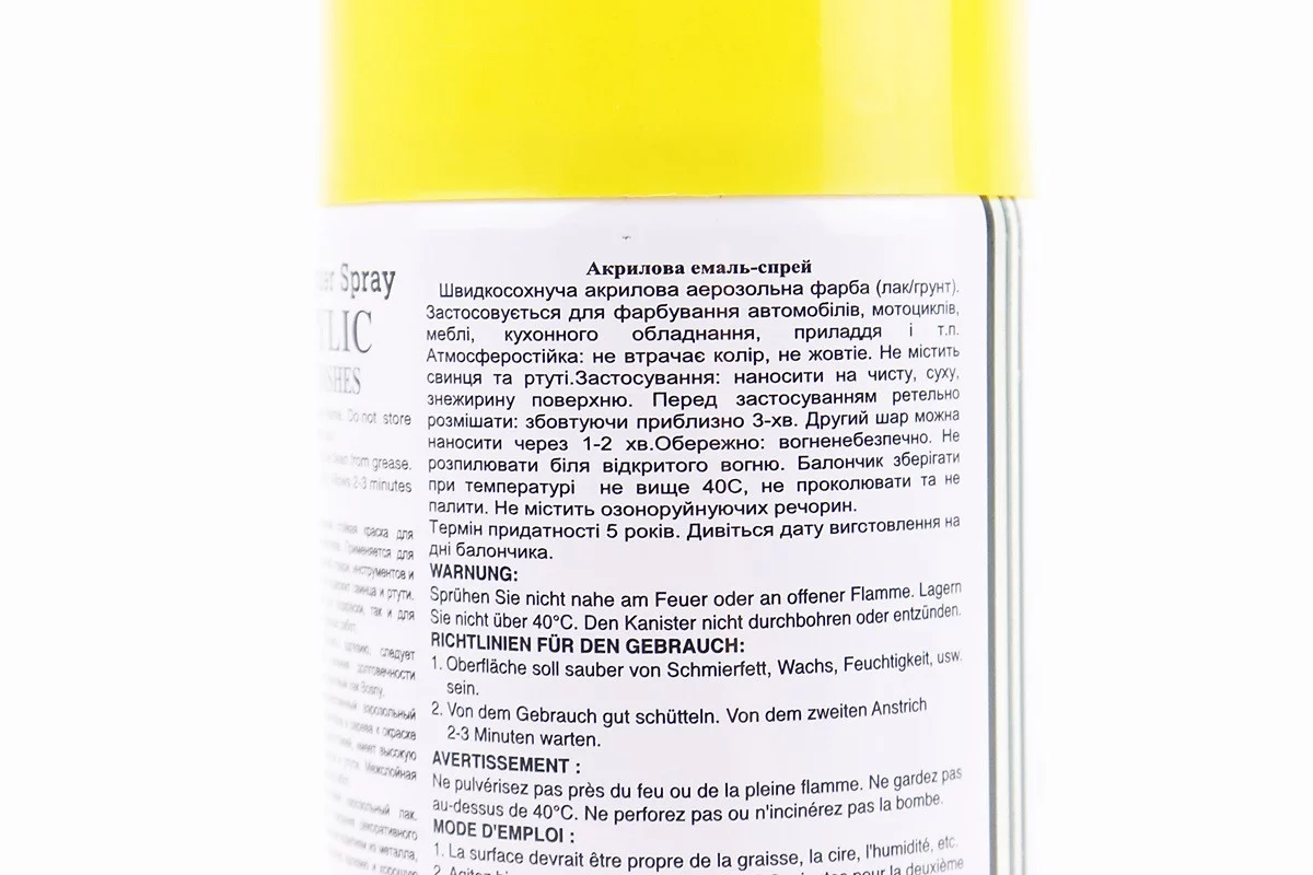 Краска акриловая №25 "ЖЕЛТЫЙ ЛИМОН", Аэрозоль 400ml