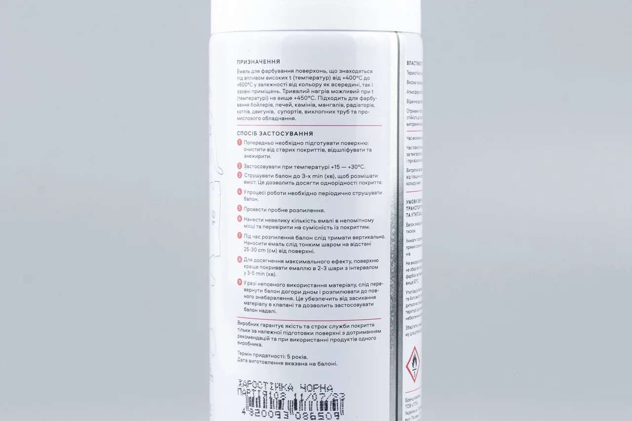 Краска чёрная эмаль термостойкая, аэрозоль 400ml, МОТОХІМІЯ