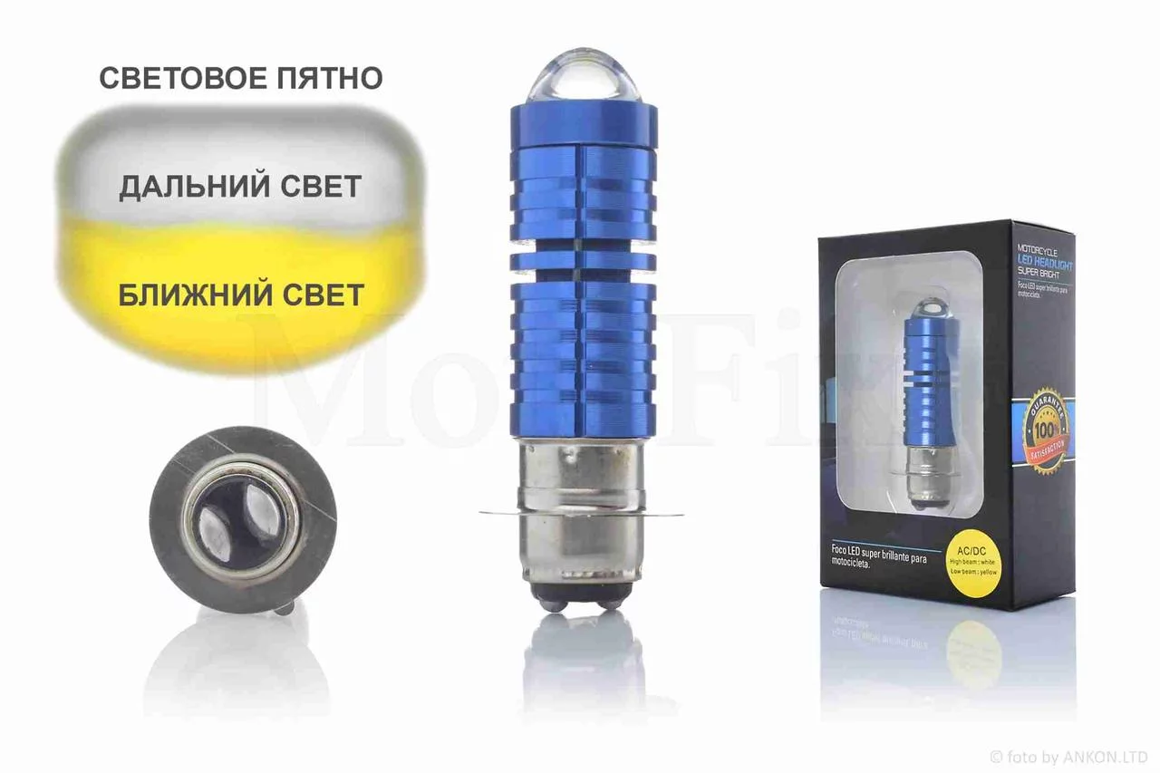 Лампа фары диодная P15D-25-1 12V 35/35W 1 ус, линза, синий корпус "HUKP"
