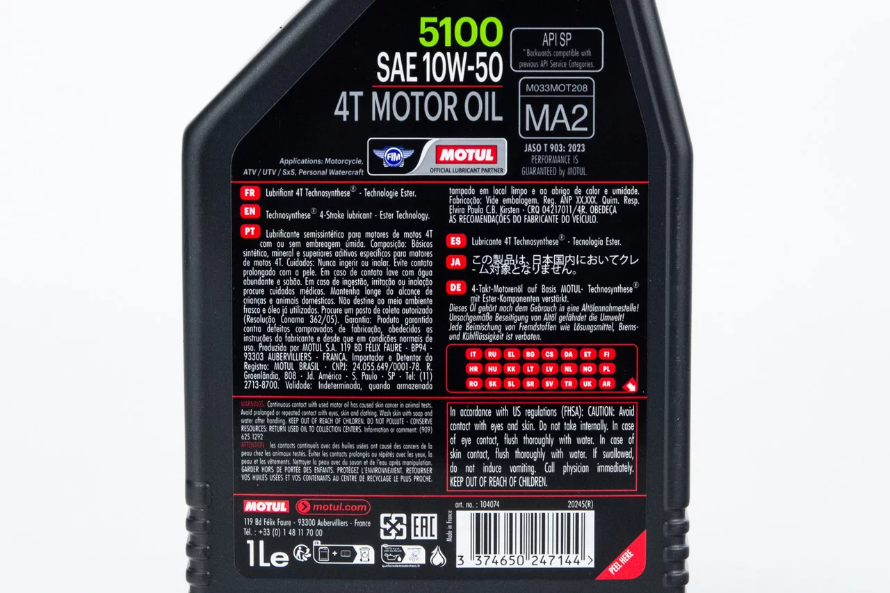Отзывы Масло 4T 10W-50 полусинтетическое для мототехники "5100 MA2", 1L, МОТОХІМІЯ, YQ-304157