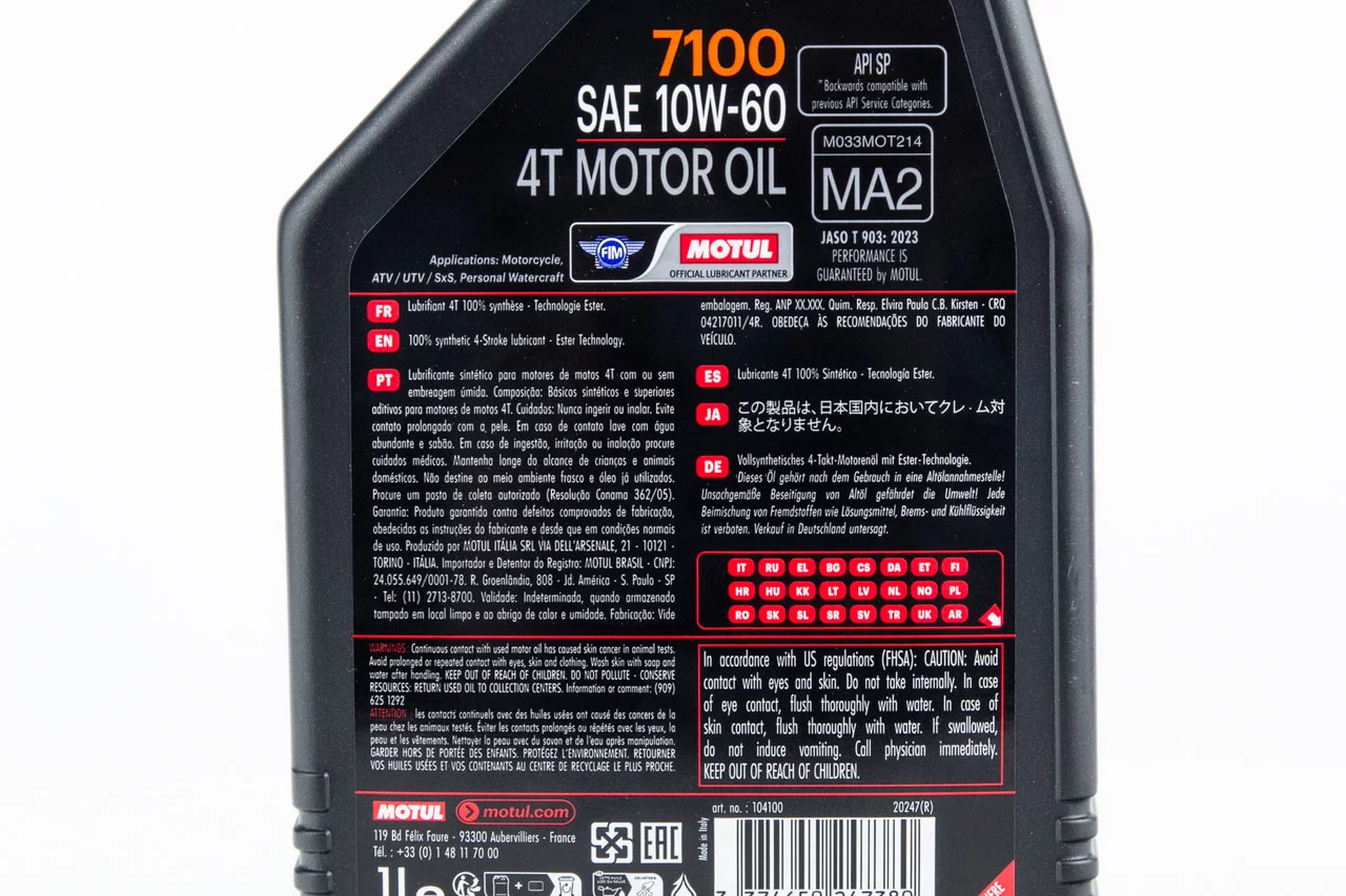 Отзывы Масло 4T 10W-60 синтетическое для мототехники "7100 MA2", 1L, МОТОХІМІЯ, YQ-304154