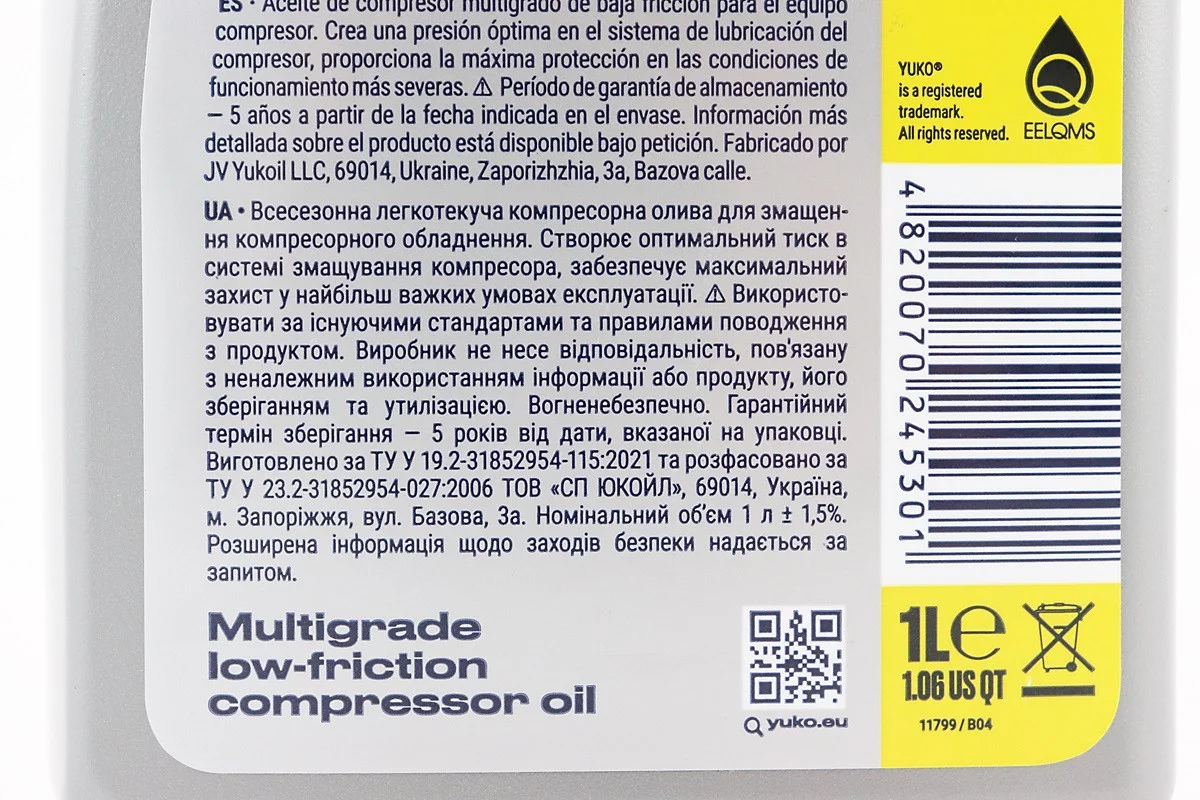 Масло - минеральное компрессорное, "VDL 100", 1L