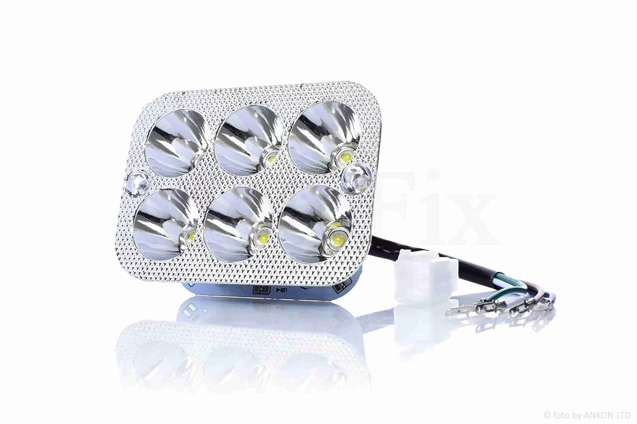 Отзывы Модуль светодиодный в фару (вставка) прямоугольный, 6+2 диодов без стекла, 3 режима, QT-012954