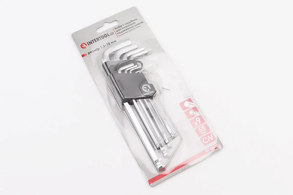 Набор Г-образных ключей удлиненных с шарообразным наконечником HEX (1,5/2/2,5/3/4/5/6/8/10мм) CrV HT-0603, FIX-702195