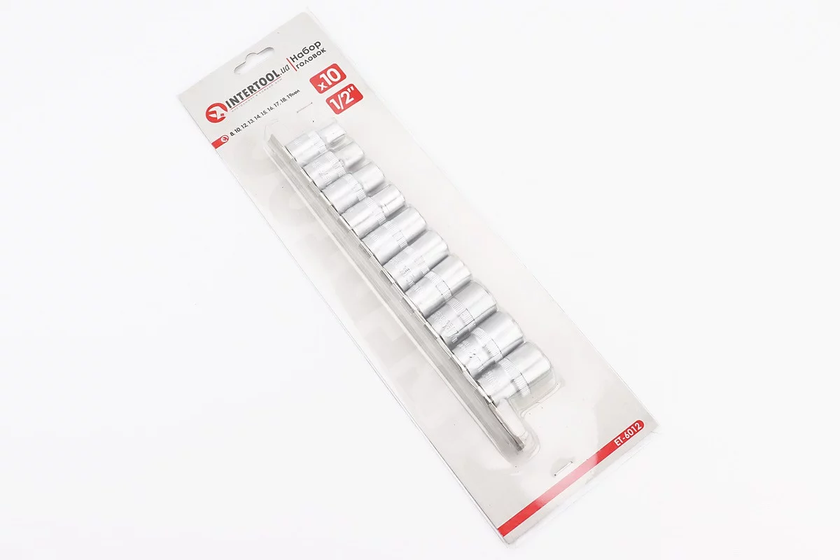 Набор головок торцевых на планке 1/2" 10шт (8/10/12/13/14/15/16/17/18/19мм) ET-6012