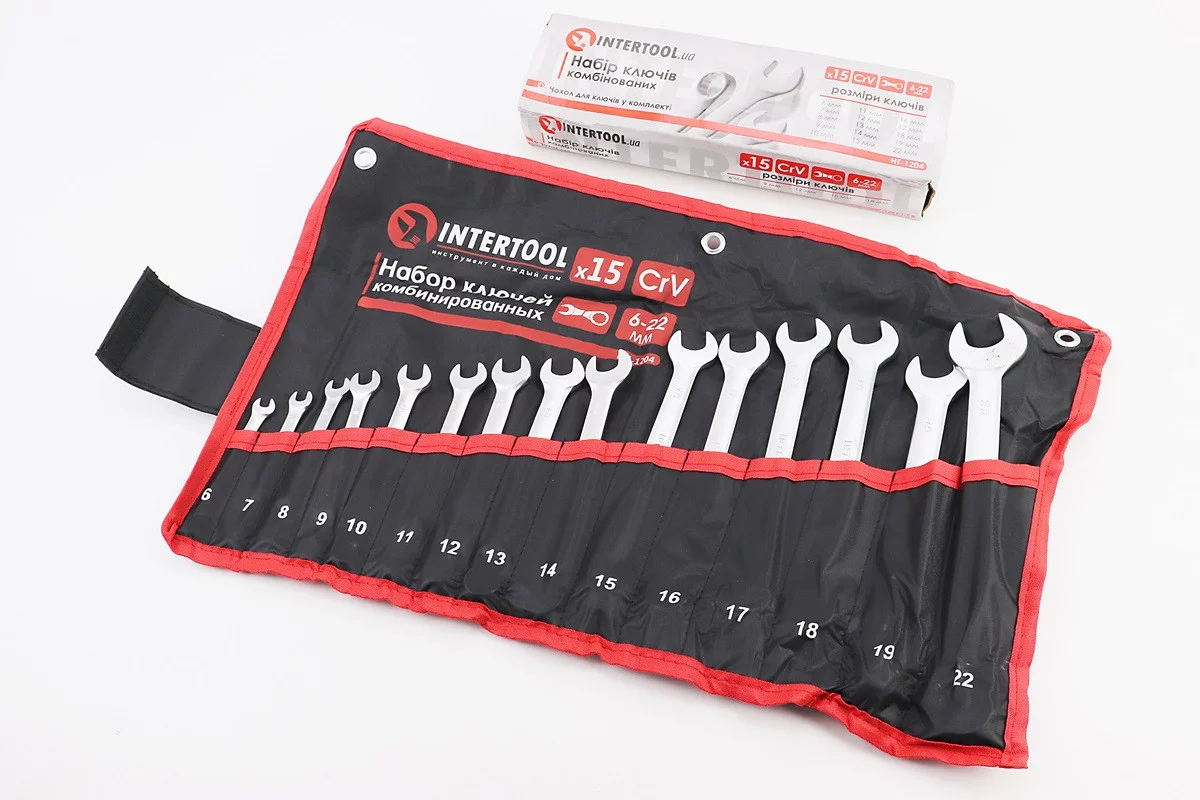 Набор ключей комбинированных 15шт (6/7/8/9/10/11/12/13/14/15/16/17/18/19/22мм) "скрутка" HT-1204