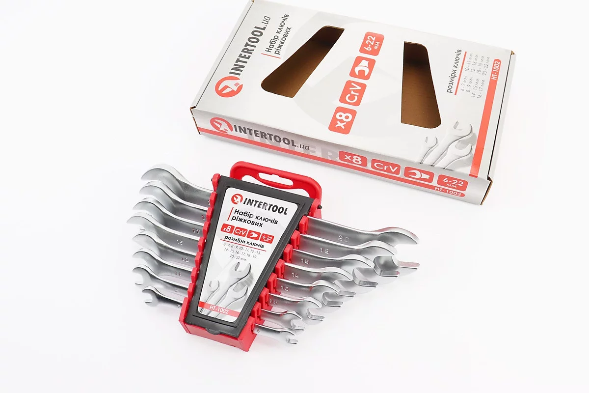 Набор ключей рожковых 8шт (6х7/8х9/10х11/12х13/14х15/16х17/18х19/20х22мм) "пластиковый держатель" HT-1002