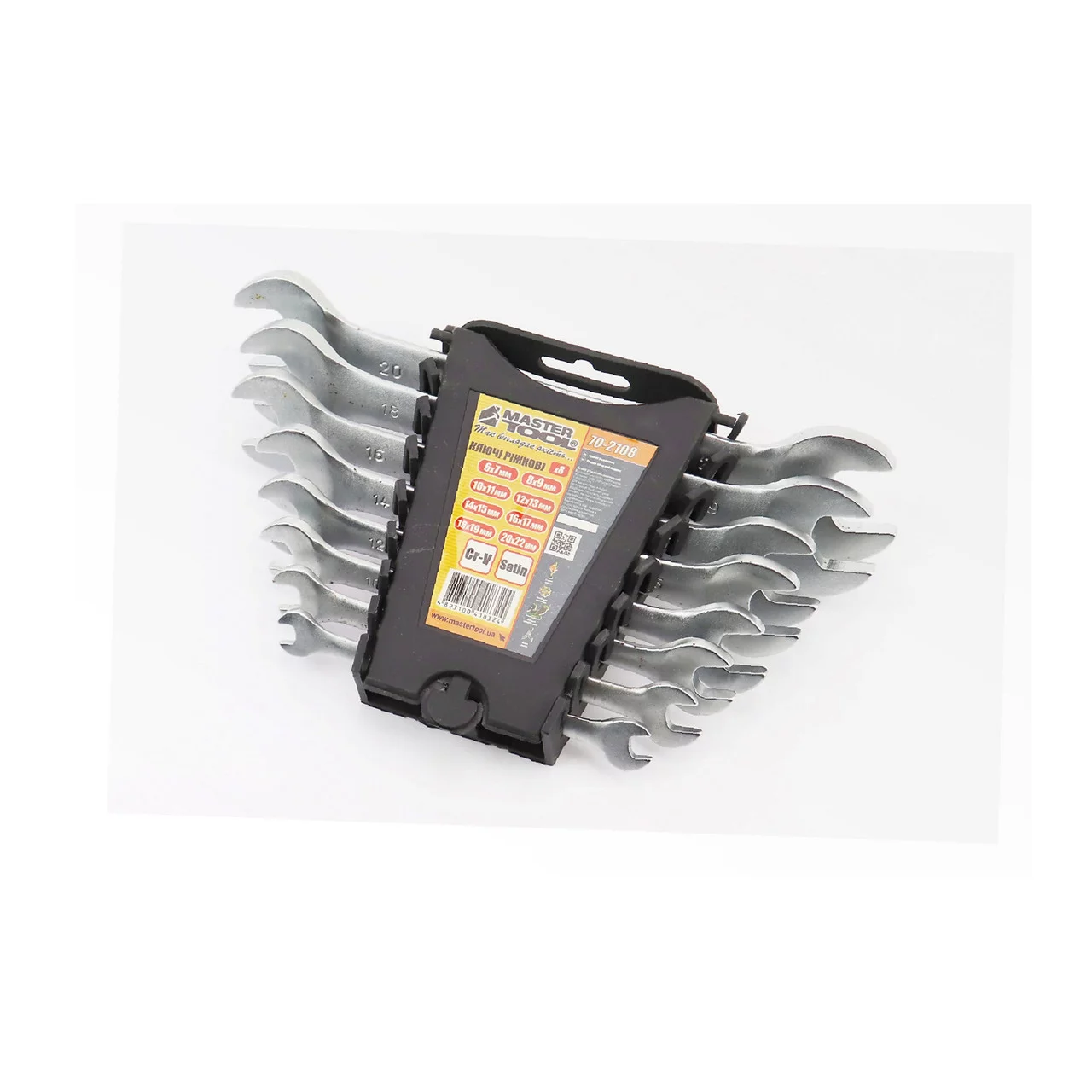 Набор ключей рожковых 8шт (6x7/8x9/10x11/12x13/14x15/16x17/18x19/20x22мм) "пластиковый держатель" (70-2108), Ручний інструмент