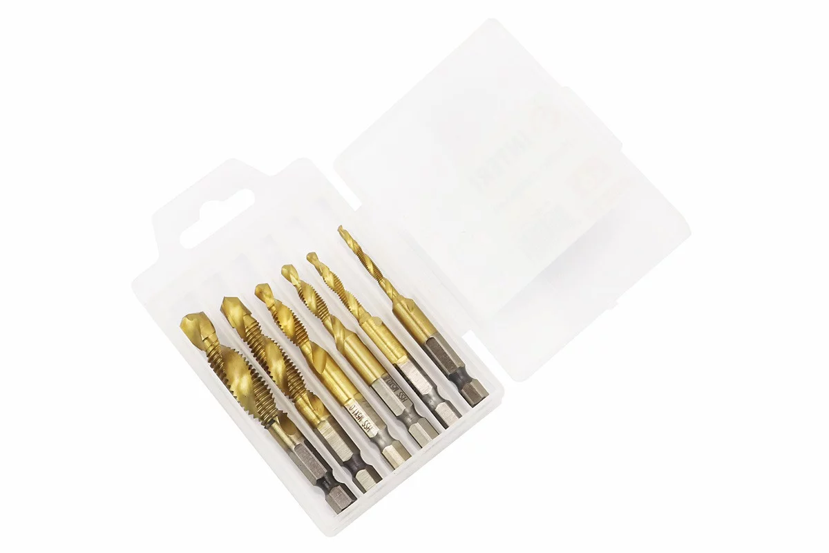 Набор сверл-метчиков по металлу 6шт M3X0,5/M4X0,7/M5X0,8/M6X1,0/M8X1,25/M10X1,5мм HSS SD-5841