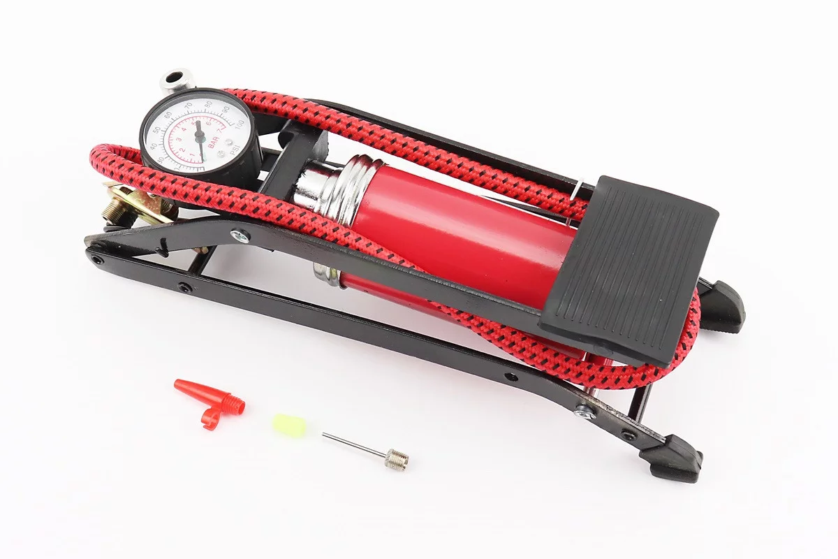 Насос ножной для шин однопоршневой 290*90мм "большой, шток толстый" красный