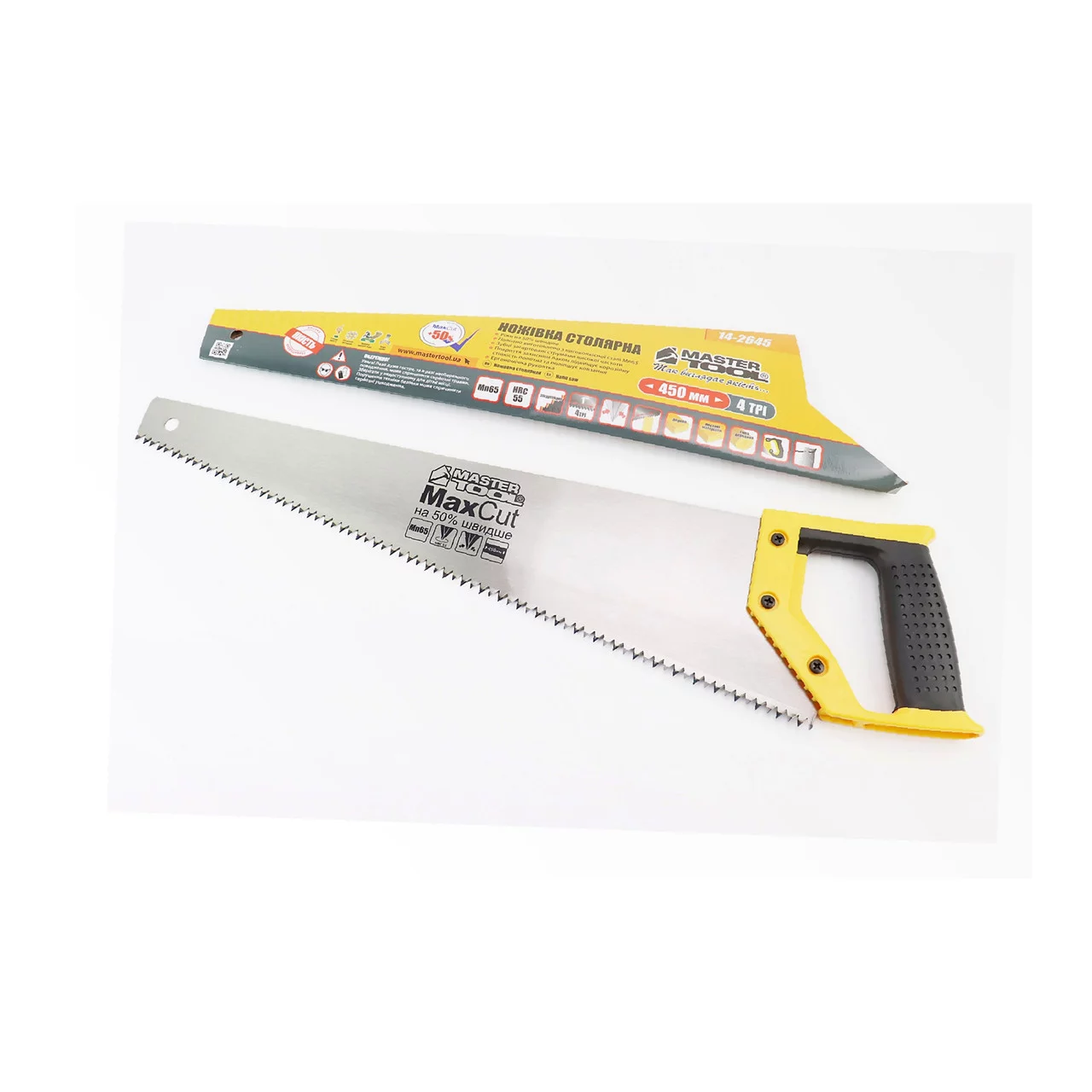 Ножовка по дереву 450мм, 4TPI MAX CUT, закалённый зуб, 2D заточка (14-2645), Ручний інструмент, YQ-702313