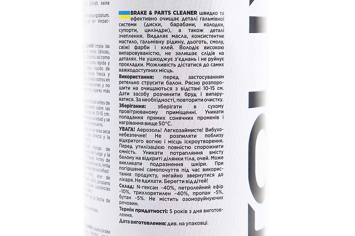 Очиститель деталей механизмов "BRAKE PARTS CLEANER", Аэрозоль 650ml