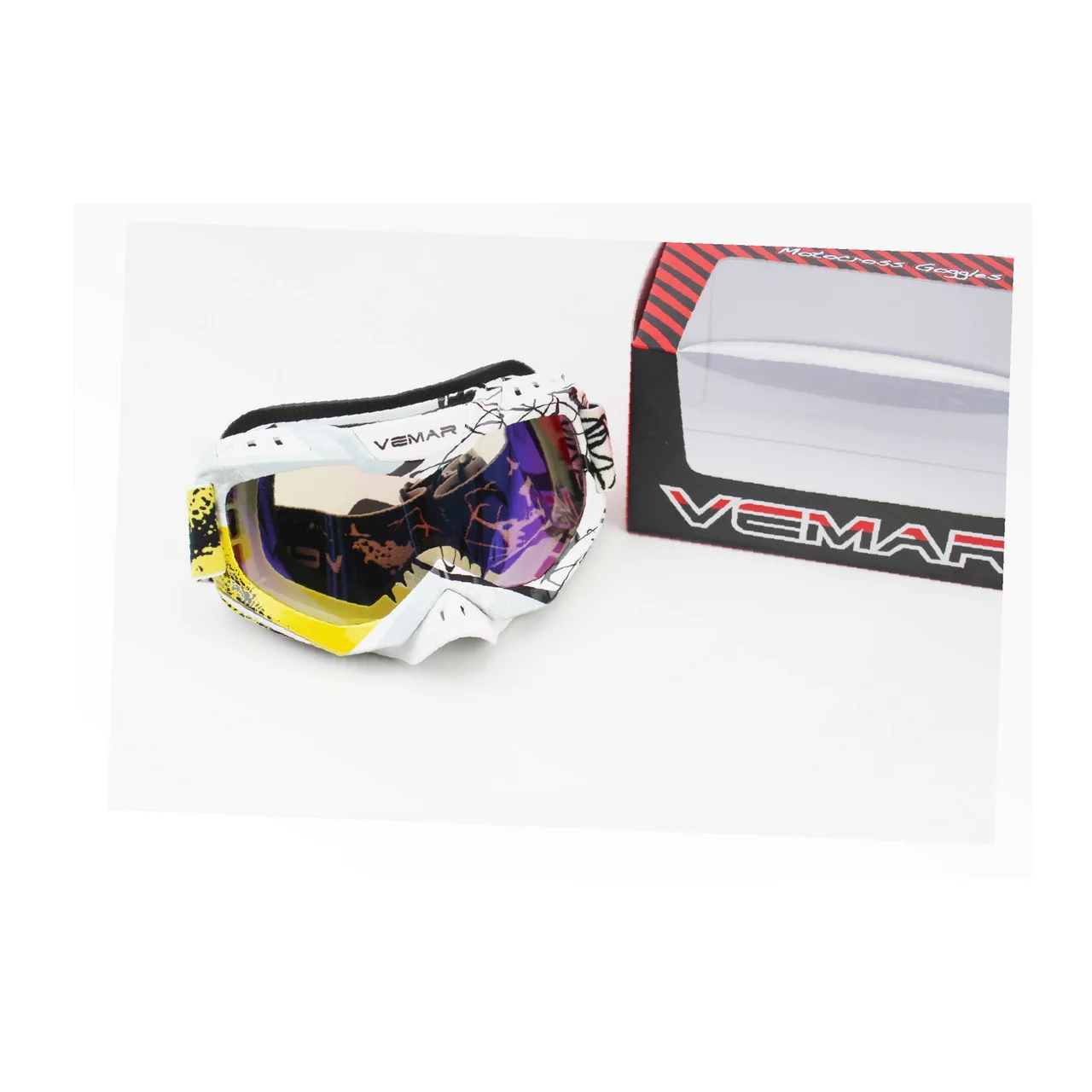 Очки кроссовые/эндуро/АТV, бело-чёрно-жёлтые (хамелеон стекло), VM-1016C, ШОЛОМИ, YQ-330836