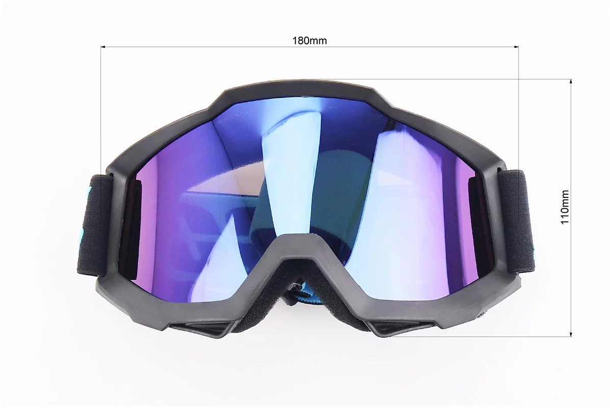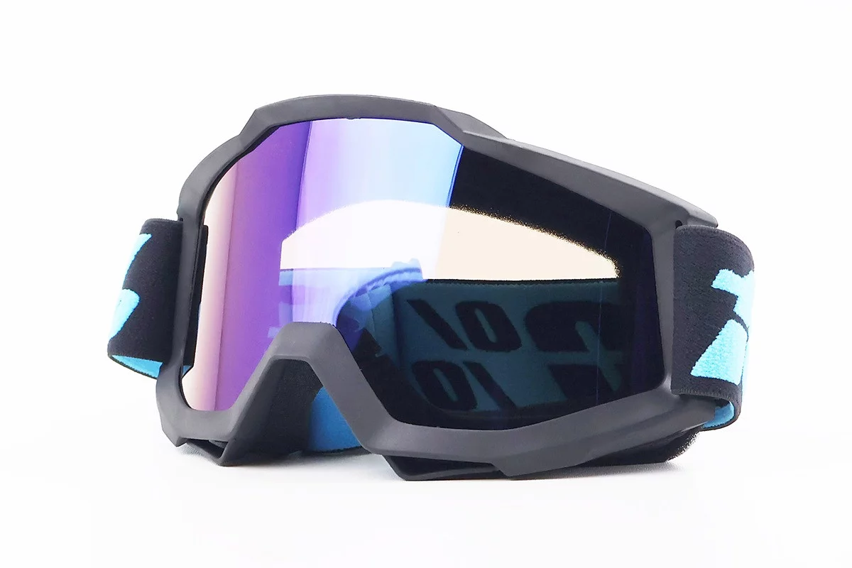 Очки кроссовые/эндуро/АТV, черные (зеркальное голубое стекло)