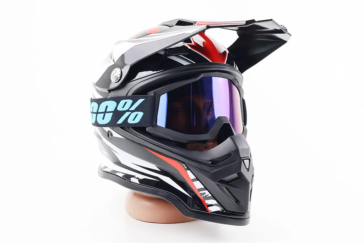 Шлем кроссовый/эндуро/АТV SOLID ZS-913 M, ЧЕРНЫЙ с красно-белым, FIX-207922