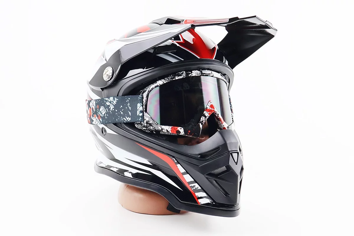 Шлем кроссовый/эндуро/АТV SOLID ZS-913 M, ЧЕРНЫЙ с красно-белым, FIX-207922
