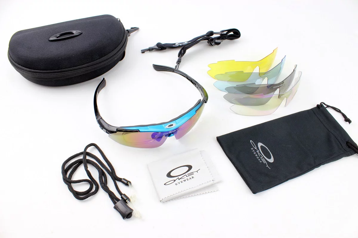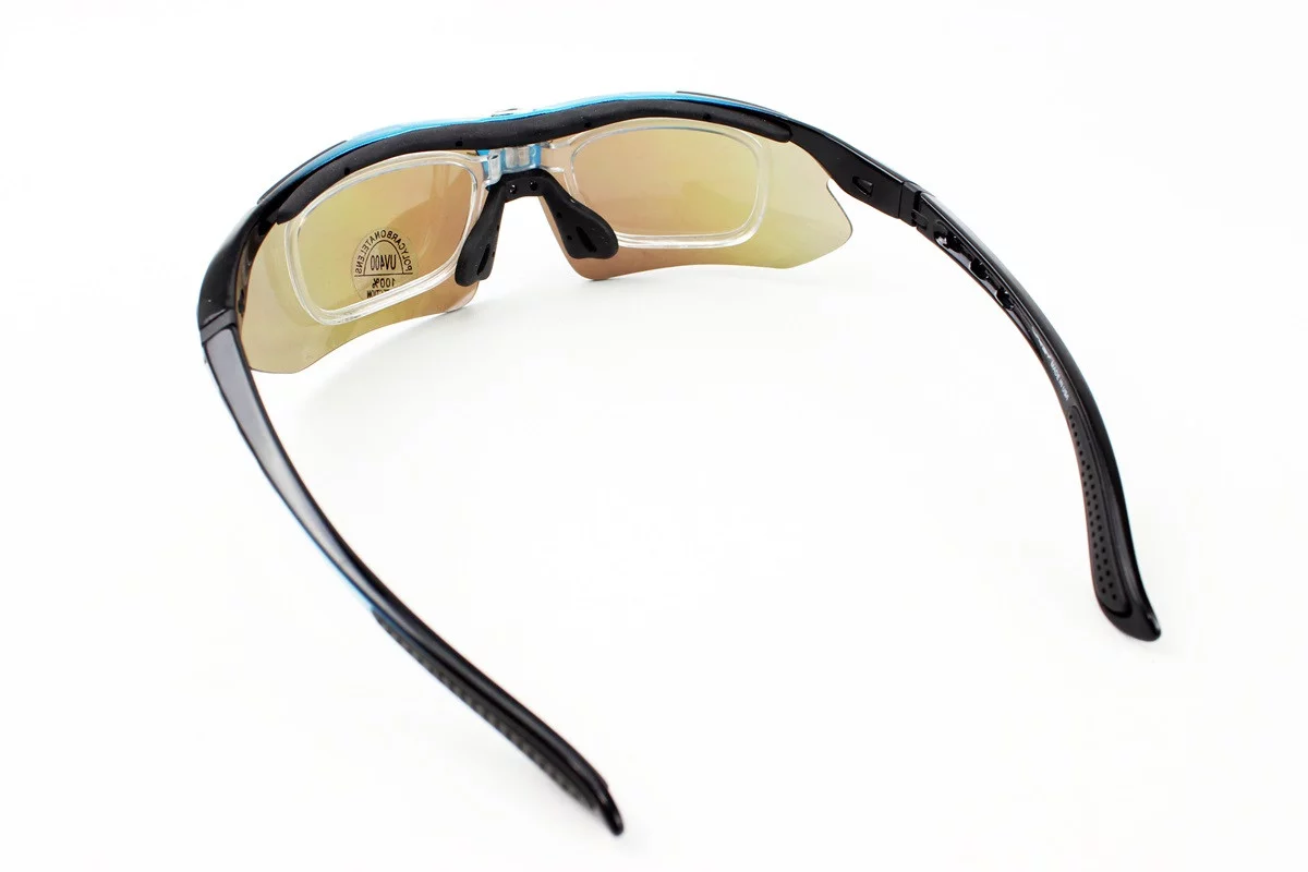 Очки с набором для ухода, сменные линзы 5шт, в жёстком чехле, сине-чёрные
