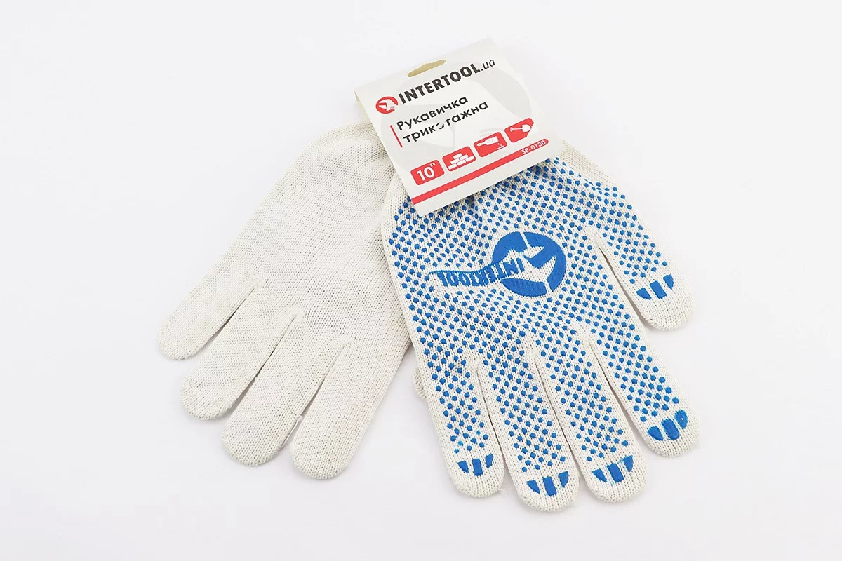 Отзывы Перчатки рабочие 70% хлопок/30% полиэстер 10", класс вязки 10, белый, синяя ПВХ точка SP-0130, FIX-703217