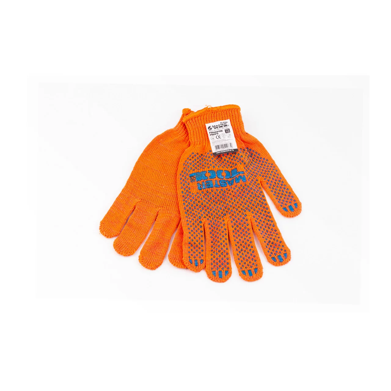 Перчатки рабочие 70% хлопок/30% полиэстер 10", класс вязки 10, оранжевые синяя ПВХ точка (83-0300), Витратні матеріали