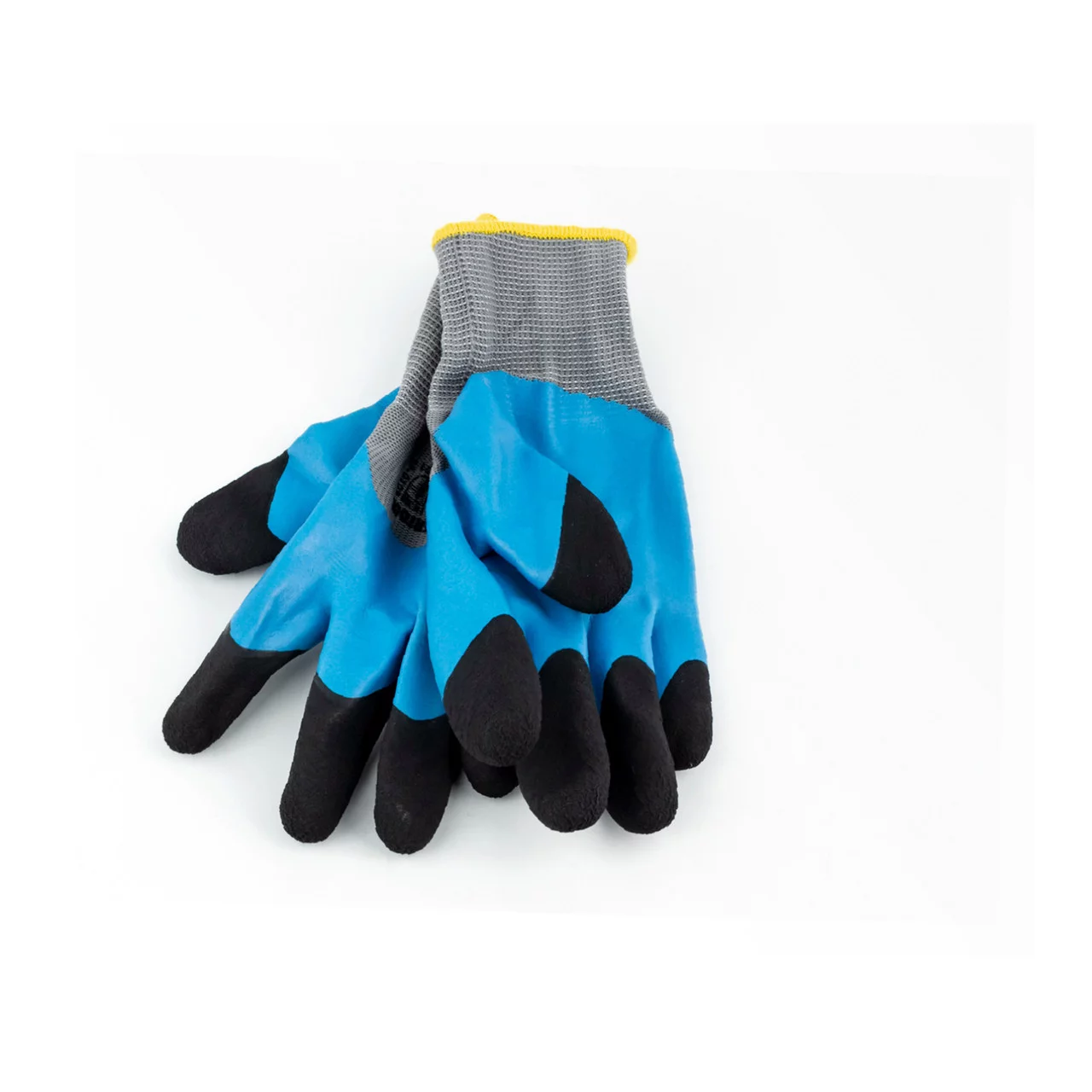 Отзывы Перчатки рабочие, трикотажные 8", покрытие ладони вспененным латексом синего цвета, покрытие пальцев морщинистым латексом чёрного