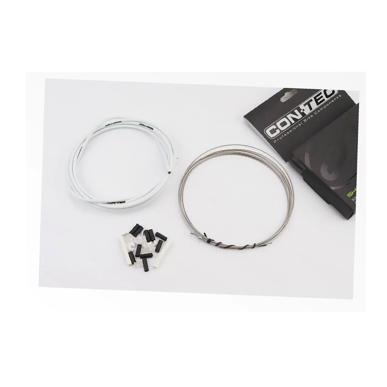 Переключения комплект универсальный "ПОЛНЫЙ" (рубашка 4мм х 2,7м, троса Slick Stainless 2000/2300мм, колпачки, концевики, фиксаторы, защита рамы), белый, ВЕЛОЗАПЧАСТИНИ