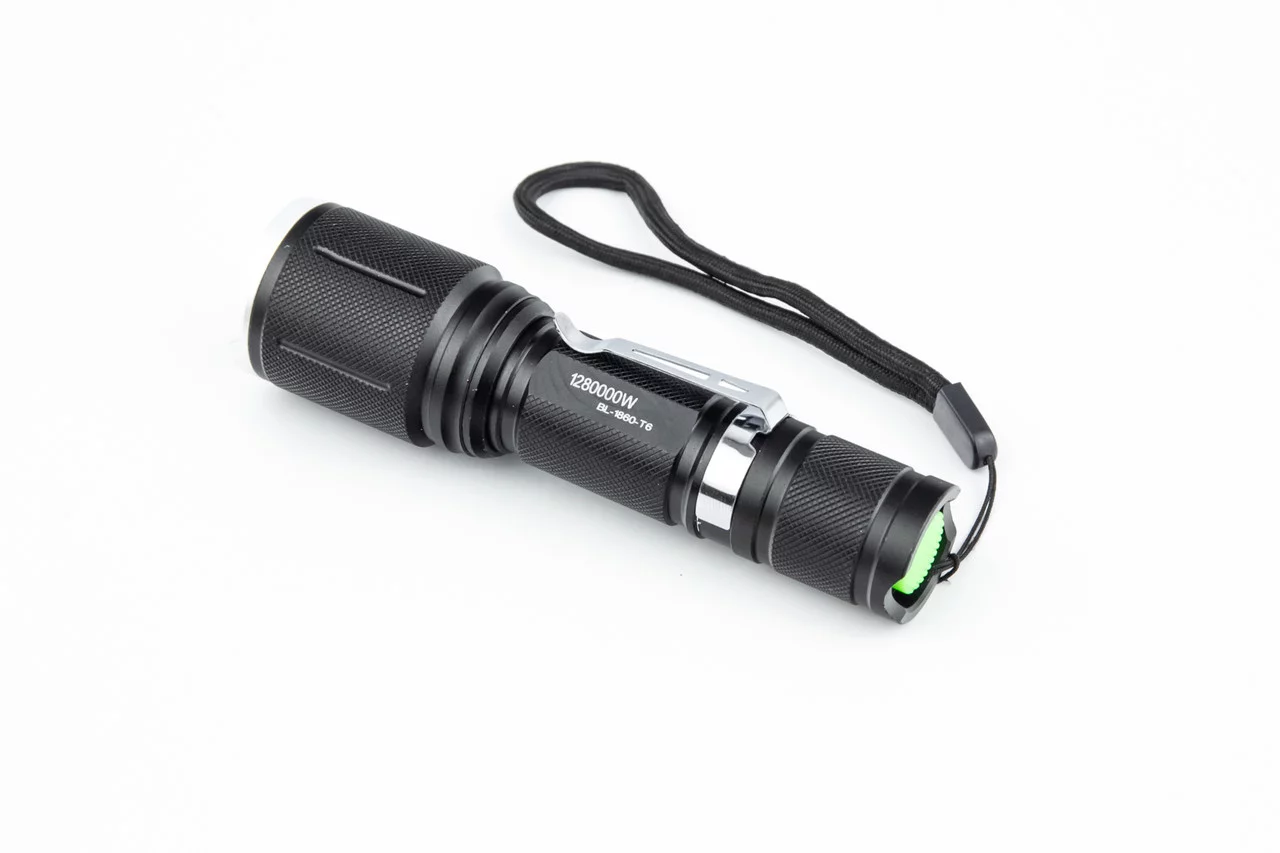Фонарь LED Cree XML-T6 (Zoom) 700 lumen ручной, алюминиевый, АКБ Li-ion 3.7V 18650 зарядка от авто/220V, влагозащитный, чёрный BL-1860, ВЕЛОАКСЕСУАРИ