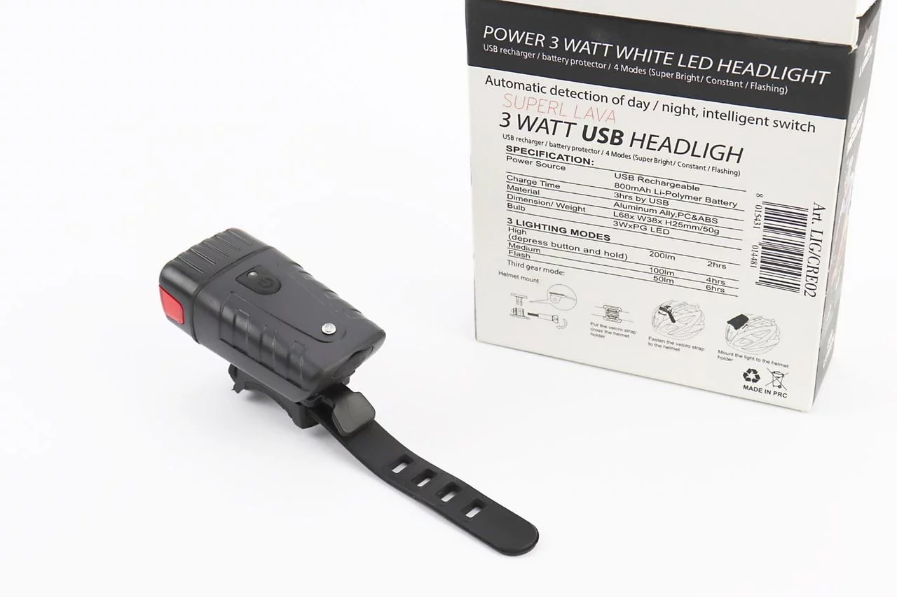 Отзывы Фонарь передний 1 диод 200 lumen, Li-ion 3.7V 800mAh зарядка от USB, ДАТЧИК СВЕТА, влагозащитный, чёрный PNK, ВЕЛОАКСЕСУАРИ,