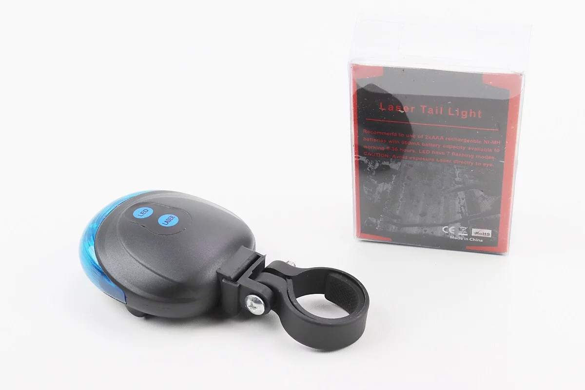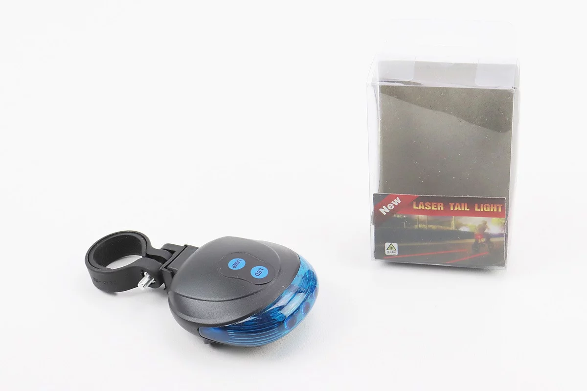Фонарь задний 5 диодов+2 лазерных луча, чёрно-синий DW-681 (без батареек)