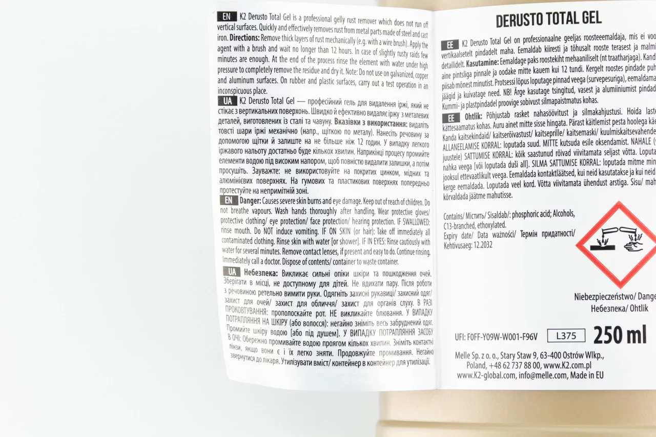 Отзывы Преобразователь ржавчины бесцветный (гель) "DERUSTO TOTAL GEL" 250ml, МОТОХІМІЯ, YQ-304783