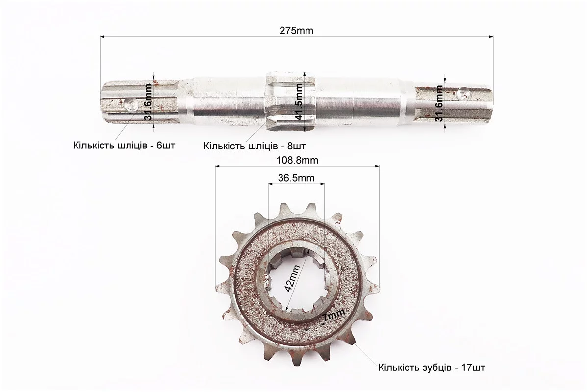 Редуктор фрезы R175/180N/190N/195N - Вал вторичный + звезда Z-17 81-1, 101-2, FIX-210689