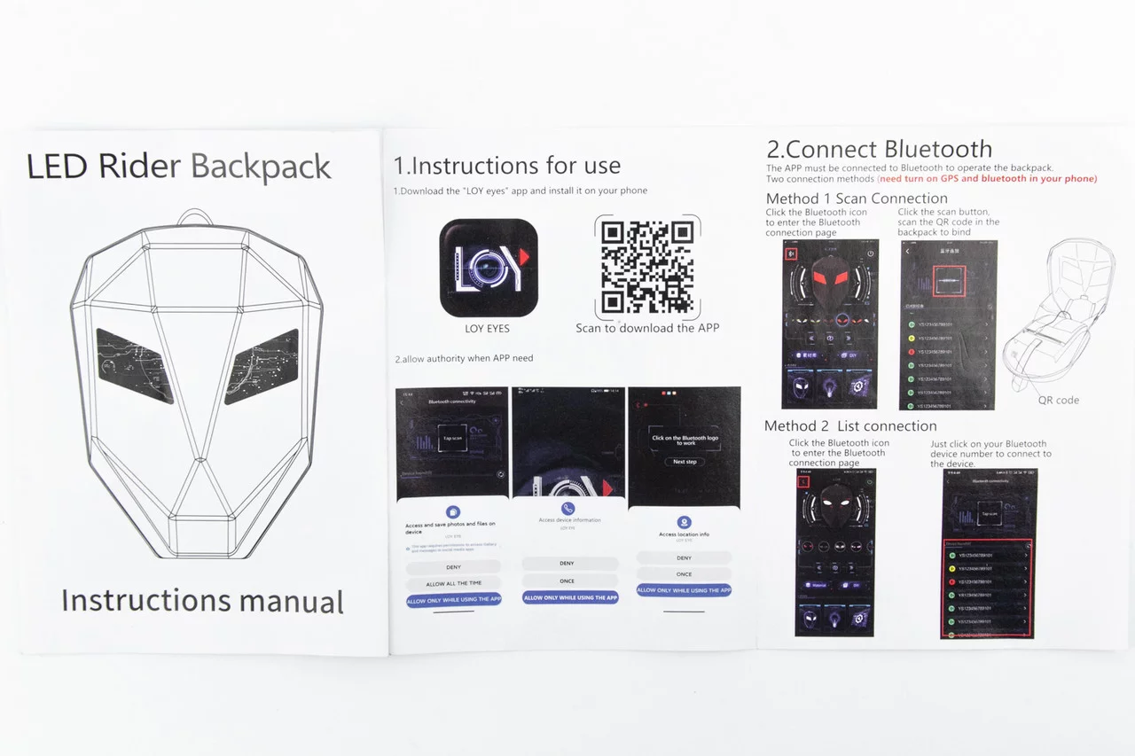 Рюкзак влагозащитный 20 л, с LED дисплеем, управление приложением LOY EYES, чёрный Pixel Moto SB9709 (Power bank не входит в
