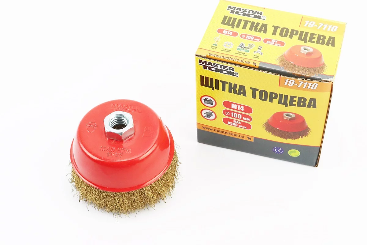 Щетка торцевая М14 D-100мм из латунированной рифленой проволоки 19-7110