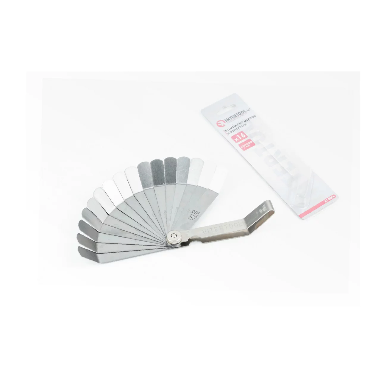 Щупы для регулировки зазоров клапанов, изогнутые 0,127-0,508мм, 16 размеров (AT-0006), Ручний інструмент