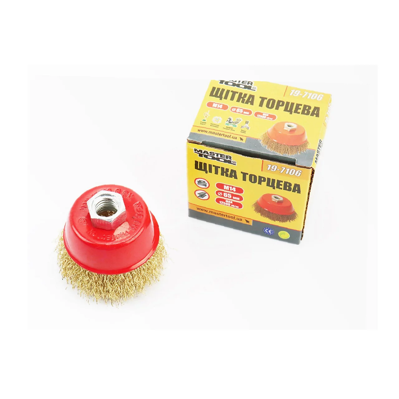 Щётка торцевая М14 D-65мм из латунированной рифлёной проволоки (19-7106), Витратні матеріали