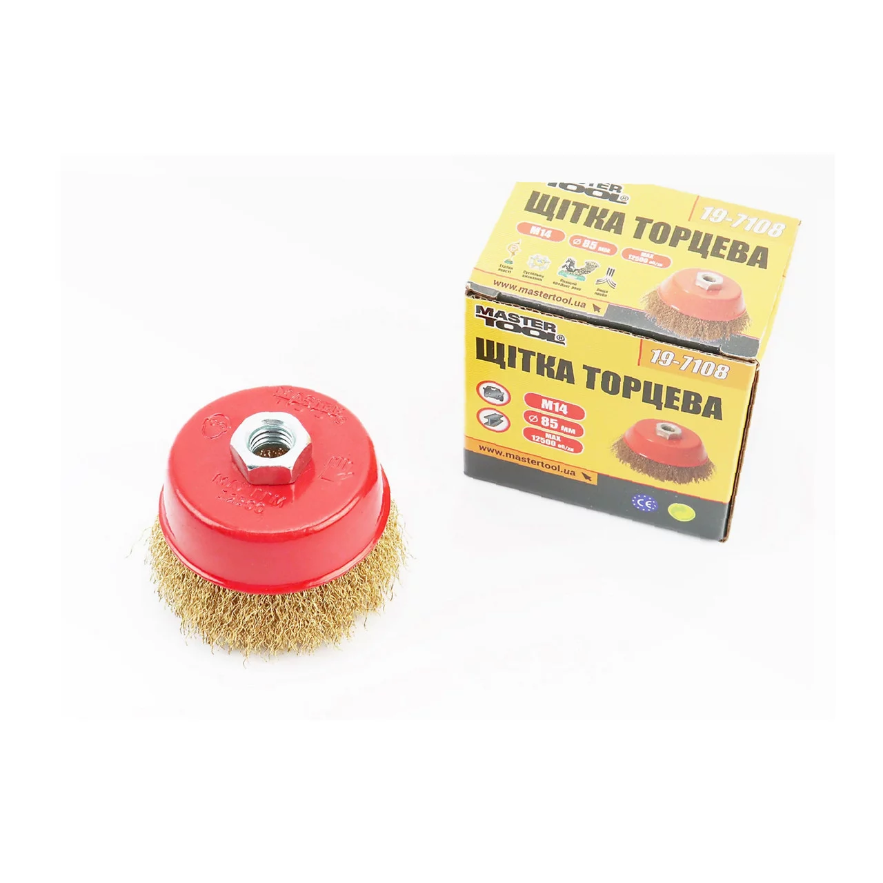 Щётка торцевая М14 D-85мм из латунированной рифлёной проволоки (19-7108), Витратні матеріали, YQ-703086