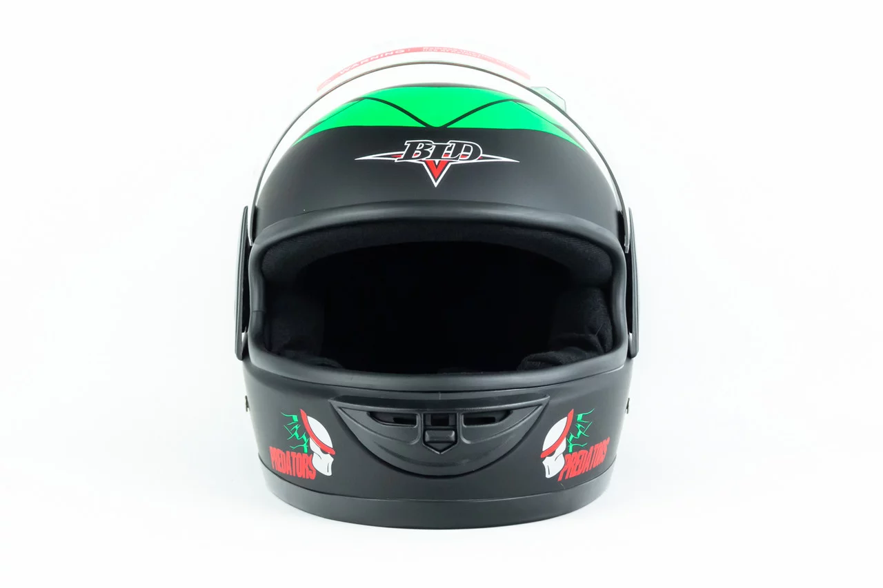 Шлем интеграл BLD-825A М (57-58см), чёрно-зелёный "хищник" мат, ШОЛОМИ