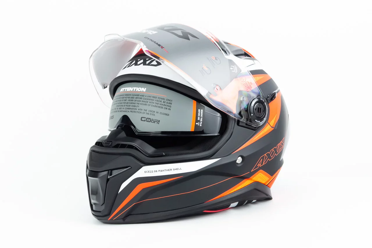 Шлем интеграл (стандарт DOT/ECE), выдвижные очки PANTHER SV THORN L (59-60см), чёрно-оранжевый мат, ШОЛОМИ
