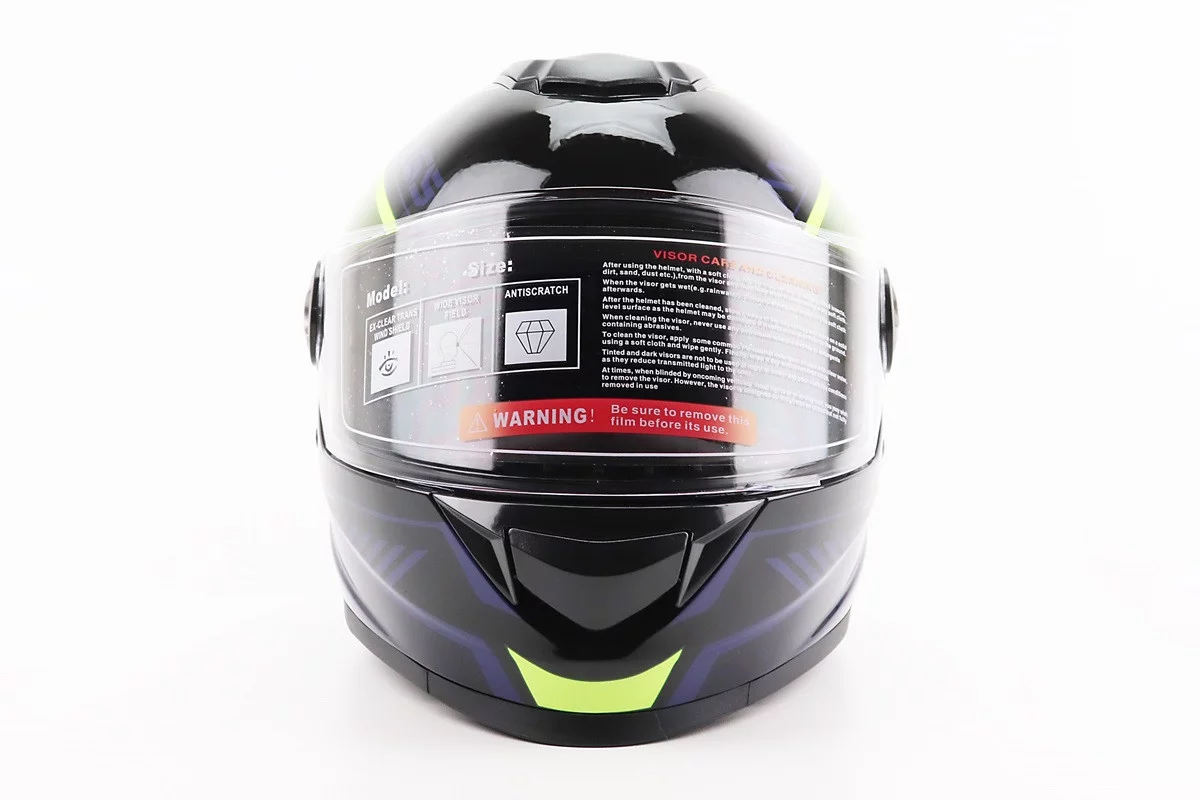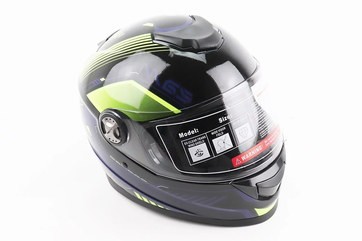Шлем интеграл, закрытый BLD-М65 L (59-60см), ЧЕРНЫЙ/НЕОНОВО-ЖЕЛТО-СИНИЙ