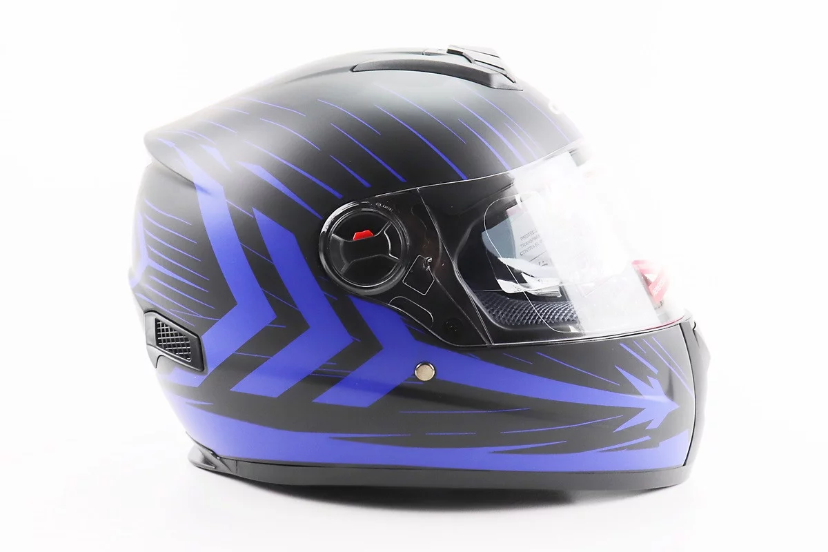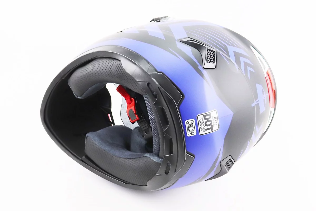Шлем интеграл, закрытый (сертификация DOT)+откидные очки BLD-M61 M (57-58см), ЧЕРНО-СИНИЙ (флюоресцентный)