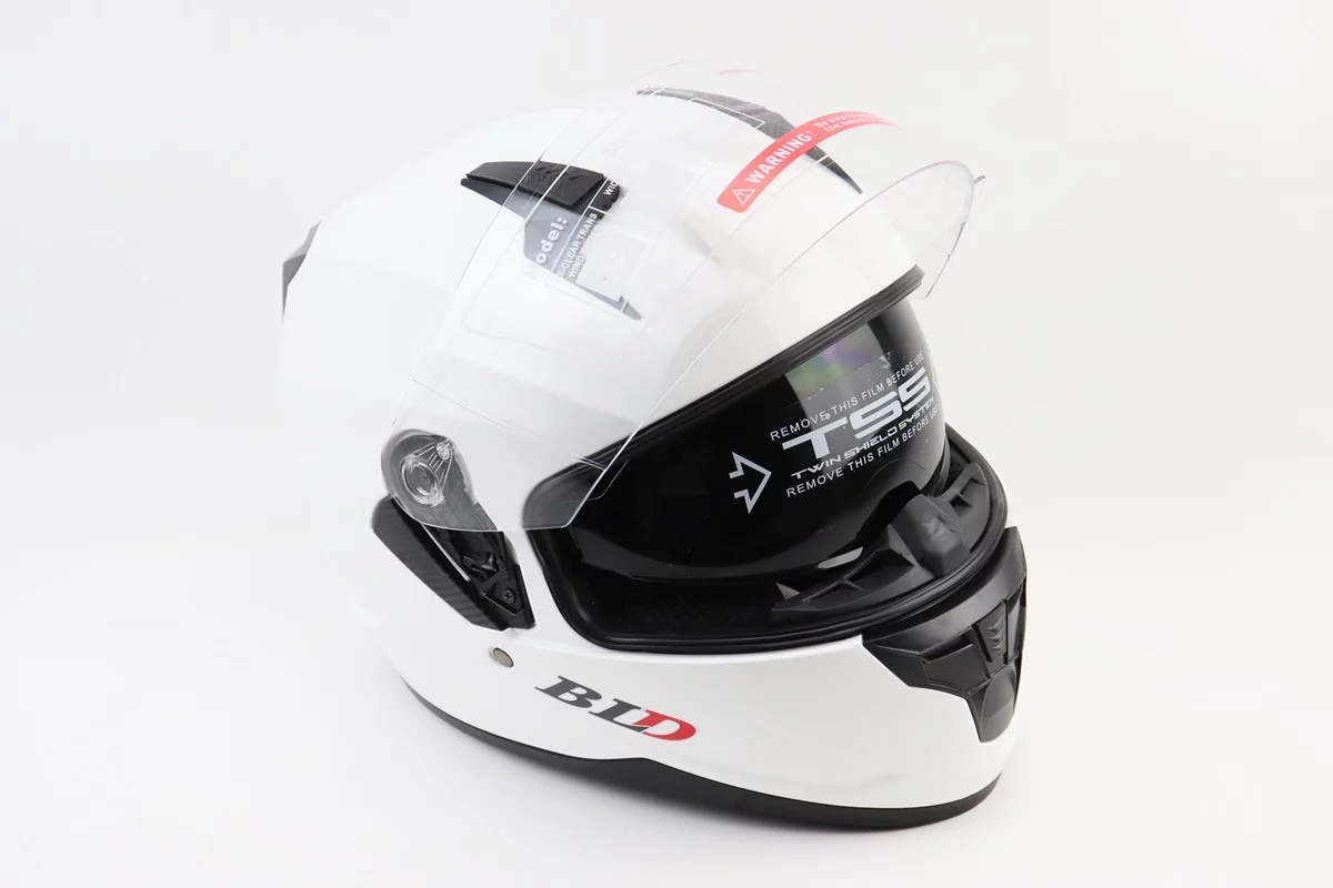 Шлем интеграл, закрытый (сертификация DOT)+откидные очки BLD-M67 М (57-58см), БЕЛЫЙ глянец