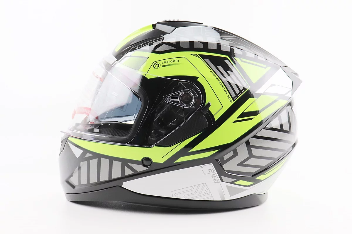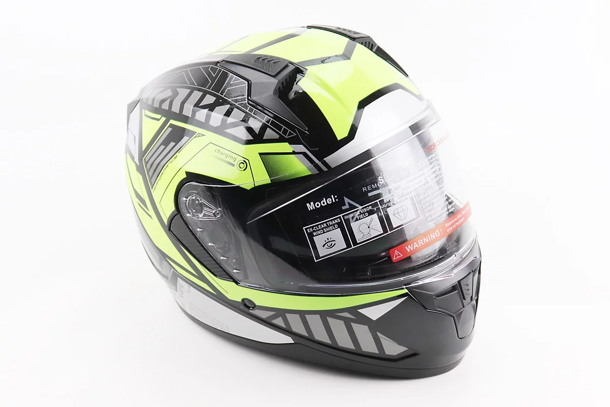 Шлем интеграл, закрытый (сертификация DOT)+откидные очки BLD-M67 М (57-58см), ЧЕРНЫЙ/НЕОНОВО-ЗЕЛЕНЫЙ