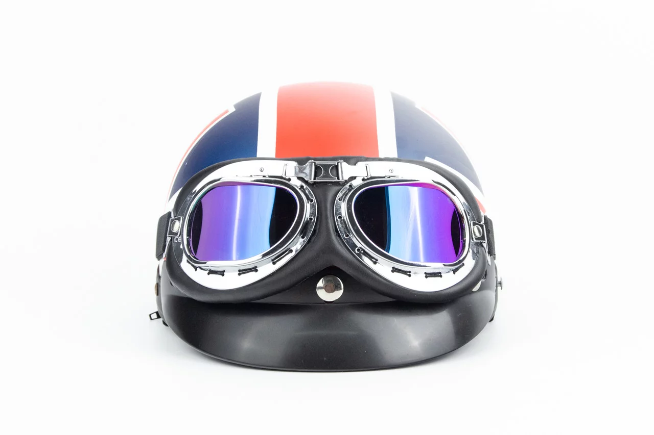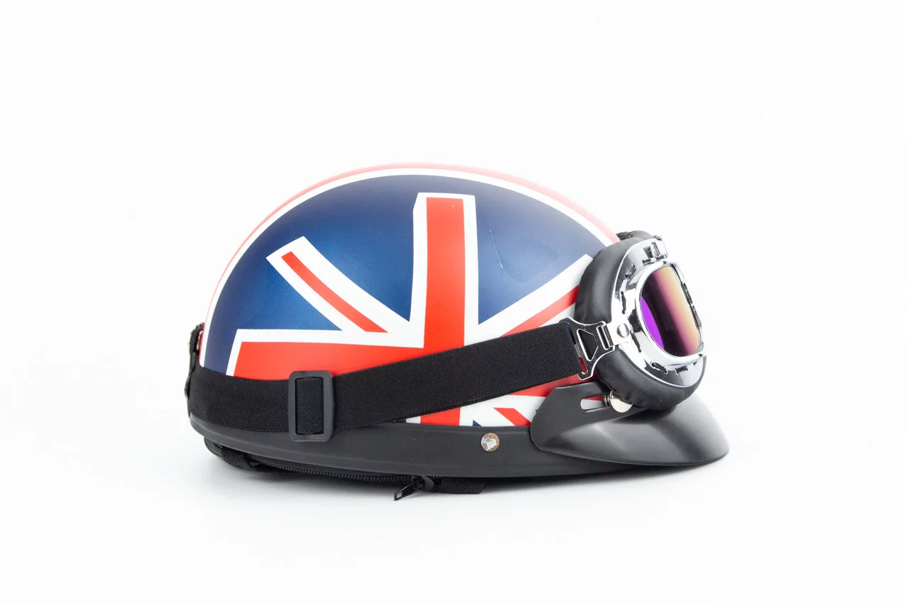 Отзывы Шлем-каска X8 со съёмным козырьком+очки, стекло, синий матовый с красно-белым рисунком "United Kingdom", ШОЛОМИ, YQ-360508
