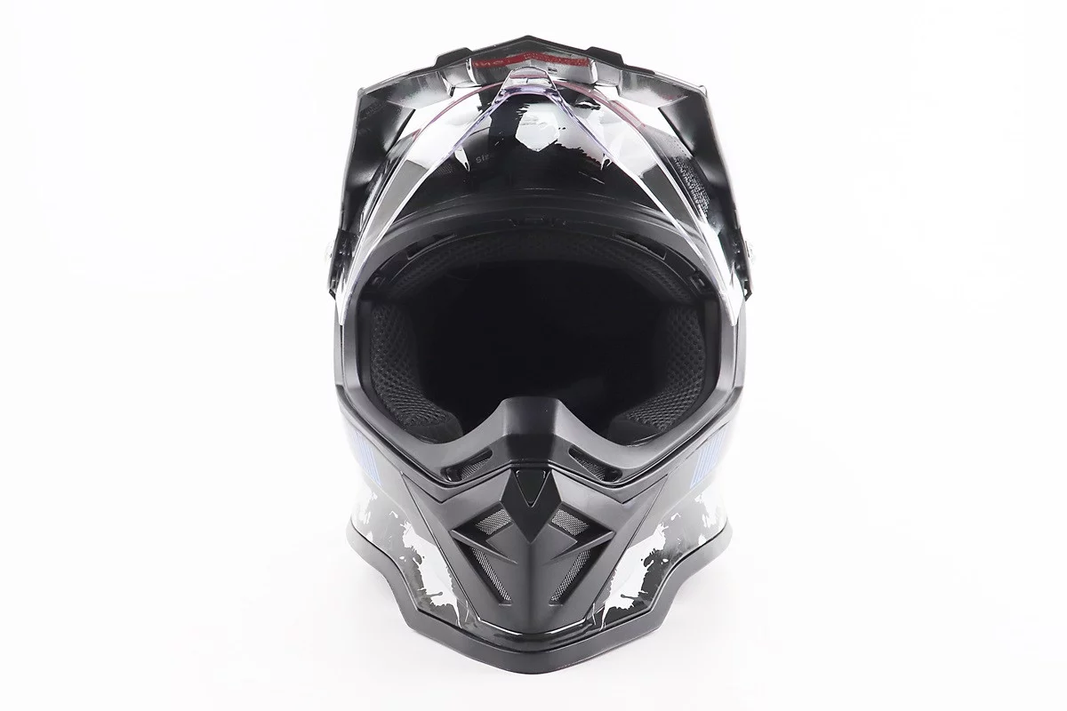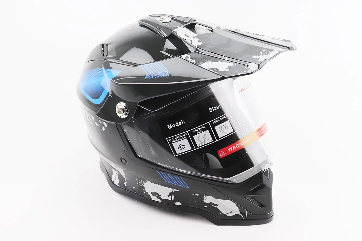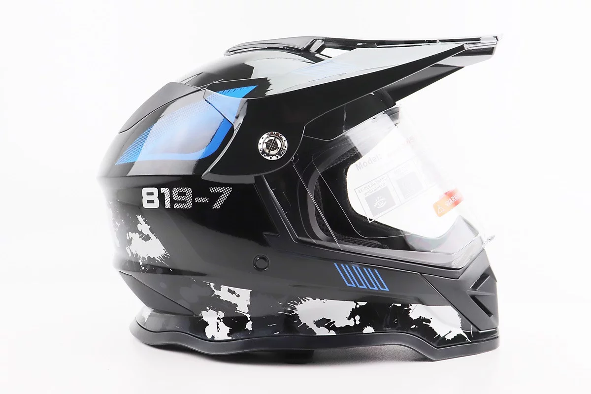 Шлем кроссовый/эндуро/АТV со стеклом BLD-819-7 L (59-60см), ЧЕРНЫЙ/СЕРО-СИНИЙ