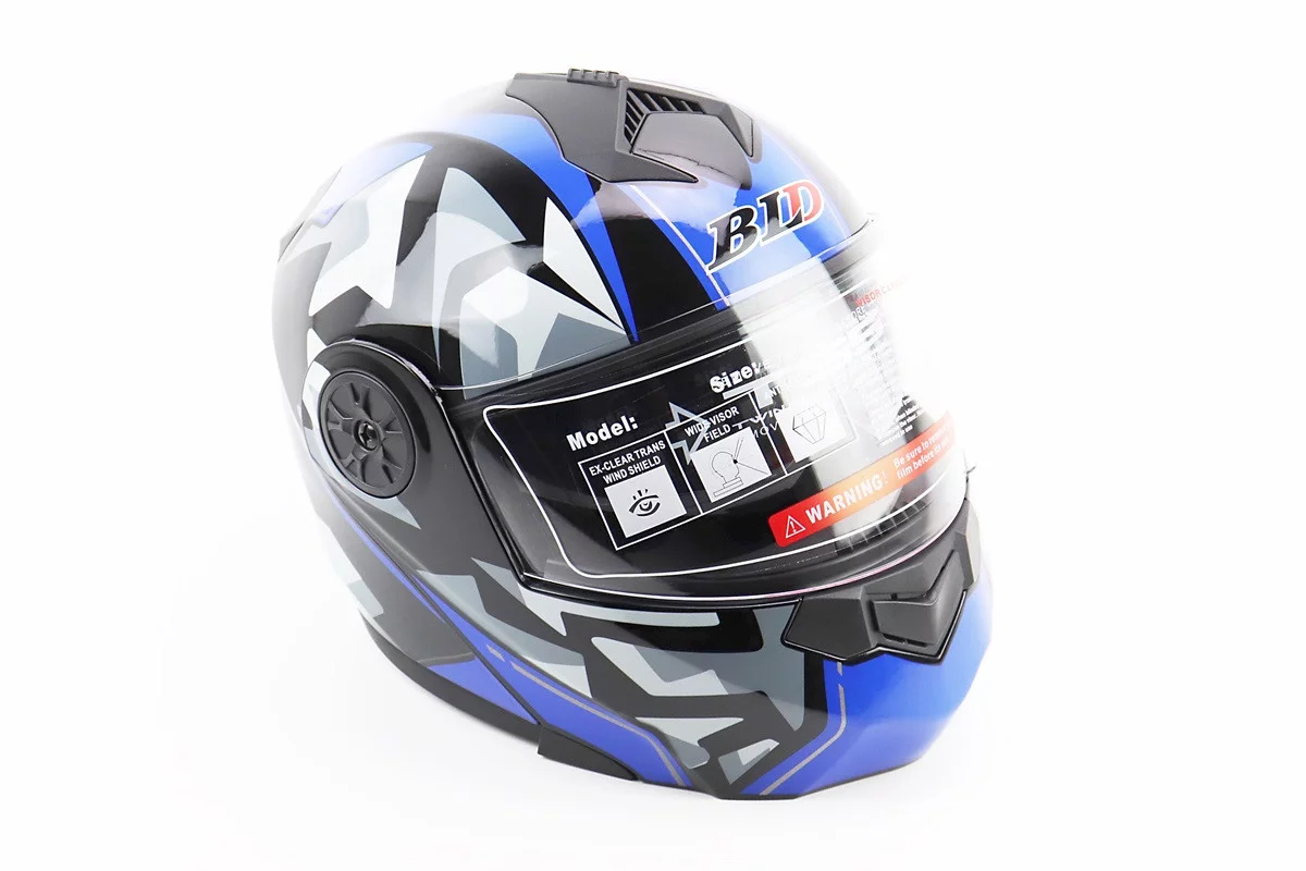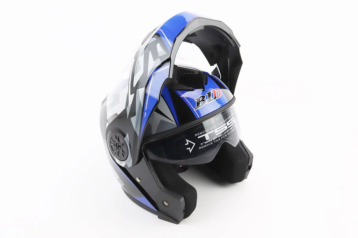 Шлем модуляр, закрытый с откидным подбородком+откидные очки BLD-159 М (57-58см), ЧЕРНО-СИНИЙ