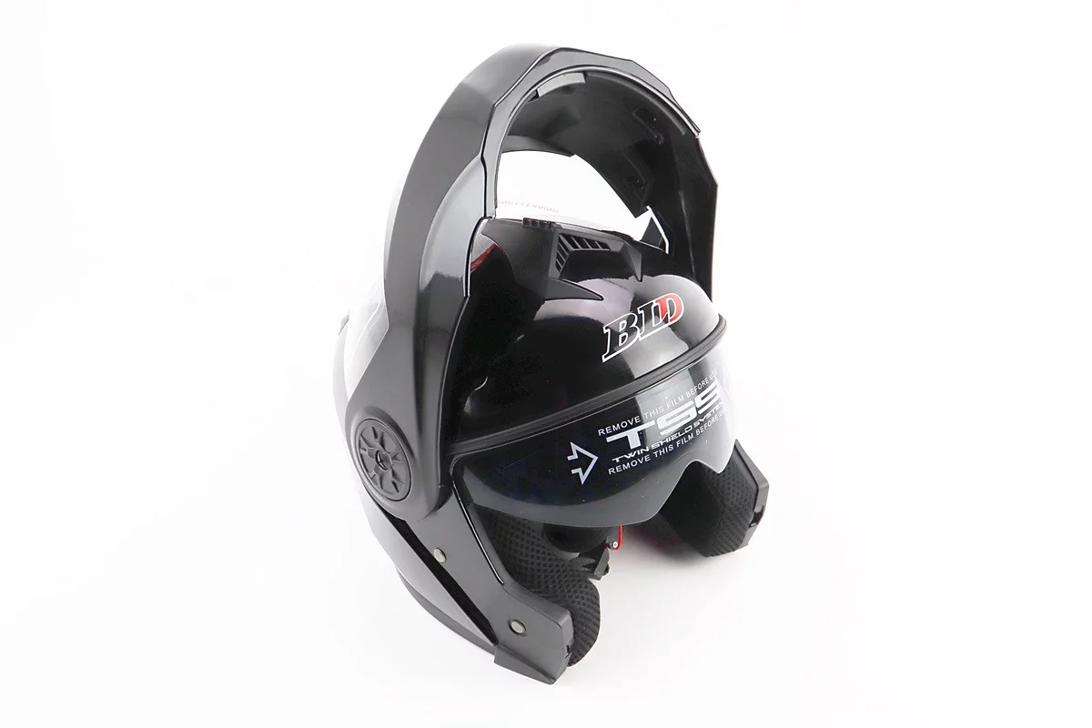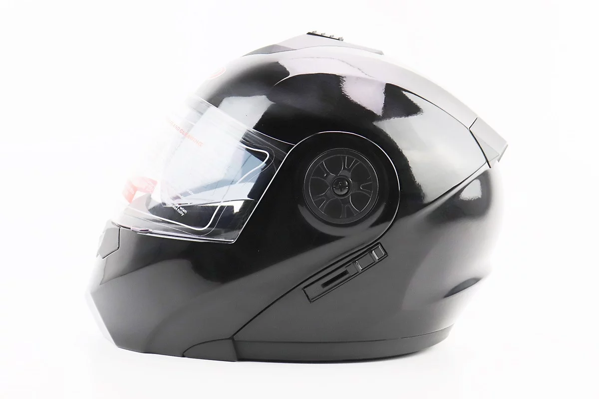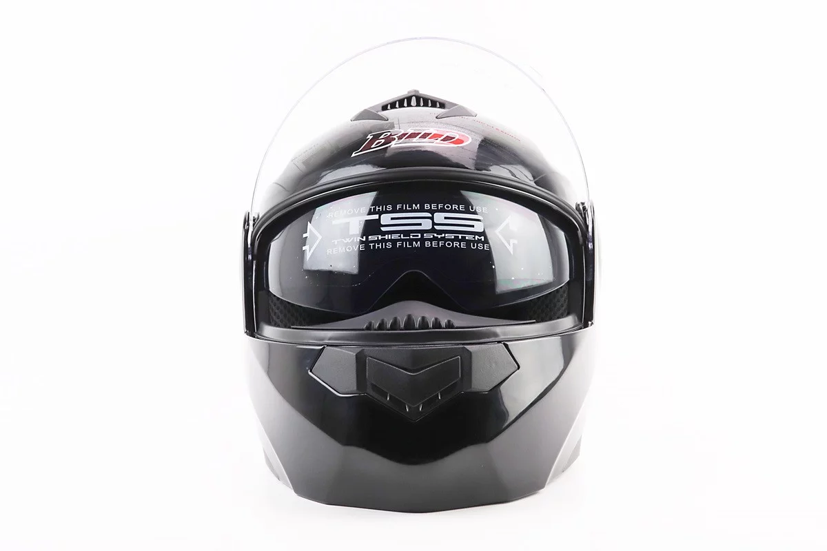 Шлем модуляр, закрытый с откидным подбородком+откидные очки BLD-159 М (57-58см), ЧЕРНЫЙ глянец
